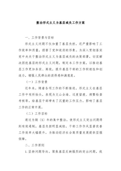 【七哥公文】2024年:整治形式主义为基层减负工作方案+更多免费公文+VX:QiGeGongWen2024