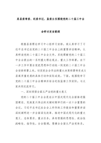 【七哥公文】2024年:某县委常委、纪委书记、监委主任围绕党的二十届三中全会研讨发言提纲+更多免费公文+VX:QiGeGongWen2024