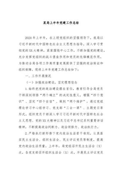 / 【七哥公文】2024年:某局上半年党建工作总结+更多免费公文+VX:QiGeGongWen2024