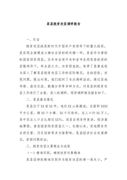 【七哥公文】2024年:某县脱贫攻坚调研报告+更多免费公文+VX:QiGeGongWen2024
