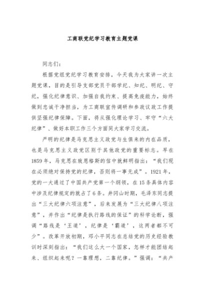 / 【七哥公文】2024年:工商联党纪学习教育主题党课+更多免费公文+VX:QiGeGongWen2024