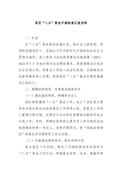/ 【七哥公文】2024年:某区“八五”普法中期检查汇报材料+更多免费公文+VX:QiGeGongWen2024