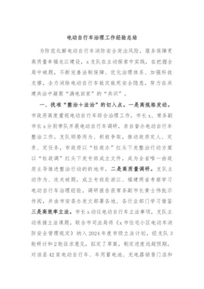 / 【七哥公文】2024年:电动自行车治理工作经验总结+更多免费公文+VX:QiGeGongWen2024
