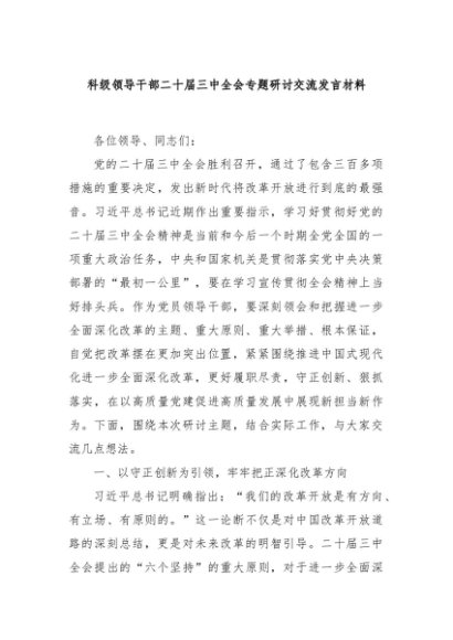 / 【七哥公文】2024年:科级领导干部二十届三中全会专题研讨交流发言材料+更多免费公文+VX:QiGeGongWen2024
