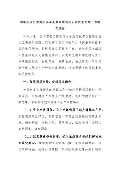【七哥公文】2024年:国有企业以党建业务深度融合推动企业高质量发展工作情况报告+更多免费公文+VX:QiGeGongWen2024
