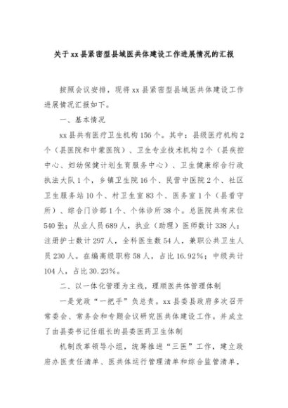 / 【七哥公文】2024年:关于xx县紧密型县域医共体建设工作进展情况的汇报+更多免费公文+VX:QiGeGongWen2024