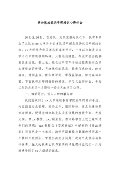 / 【七哥公文】2024年:参加政治机关干部培训心得体会+更多免费公文+VX:QiGeGongWen2024