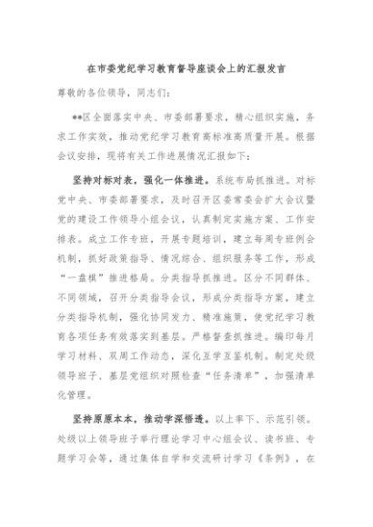 / 【七哥公文】2024年:在市委党纪学习教育督导座谈会上的汇报发言+更多免费公文+VX:QiGeGongWen2024