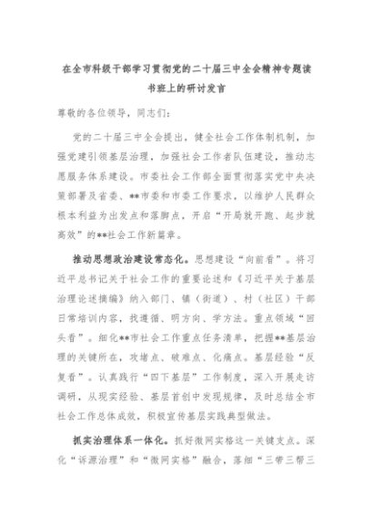 【七哥公文】2024年:在全市科级干部学习贯彻党的二十届三中全会精神专题读书班上的研讨发言+更多免费公文+VX:QiGeGongWen2024