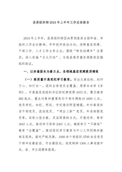/ 【七哥公文】2024年:县委组织部2024年上半年工作总结报告+更多免费公文+VX:QiGeGongWen2024