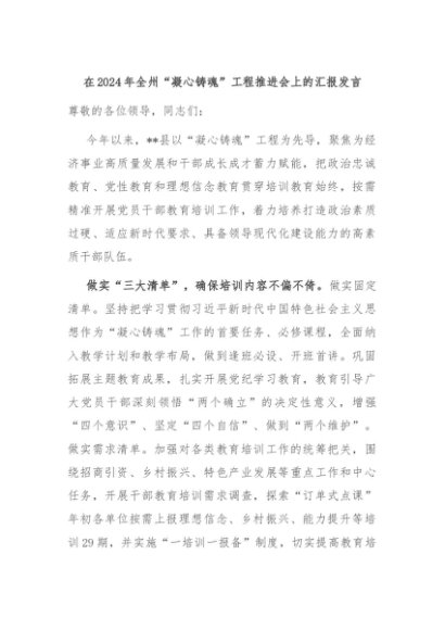 【七哥公文】2024年:在2024年全州“凝心铸魂”工程推进会上的汇报发言+更多免费公文+VX:QiGeGongWen2024