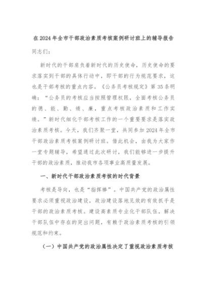 【七哥公文】2024年:在2024年全市干部政治素质考核案例研讨班上的辅导报告+更多免费公文+VX:QiGeGongWen2024