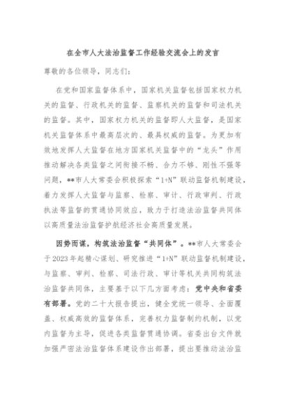 / 【七哥公文】2024年:在全市人大法治监督工作经验交流会上的发言+更多免费公文+VX:QiGeGongWen2024