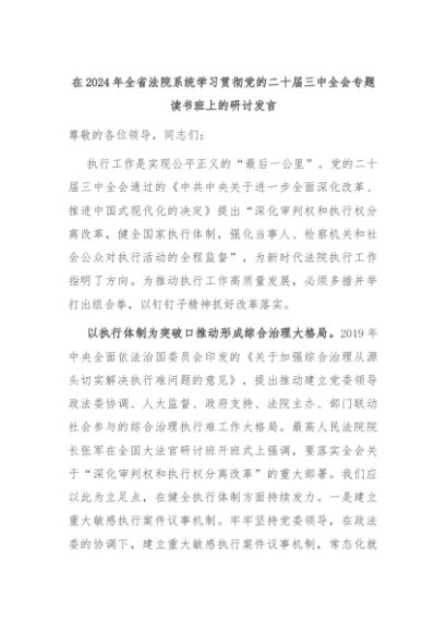 【七哥公文】2024年:在2024年全省法院系统学习贯彻党的二十届三中全会专题读书班上的研讨发言+更多免费公文+VX:QiGeGongWen2024