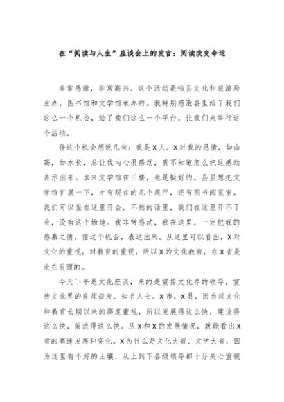 / 【七哥公文】2024年:在“阅读与人生”座谈会上的发言:阅读改变命运+更多免费公文+VX:QiGeGongWen2024