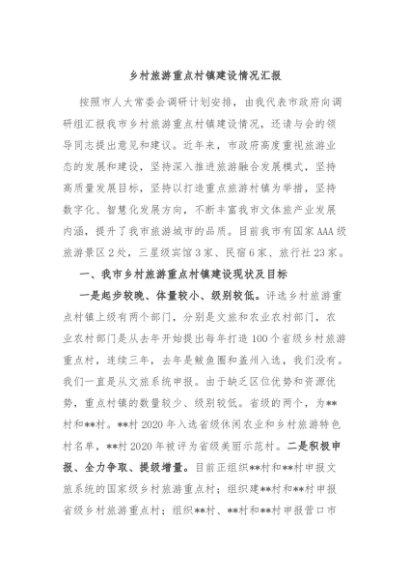 / 【七哥公文】2024年:乡村旅游重点村镇建设情况汇报+更多免费公文+VX:QiGeGongWen2024