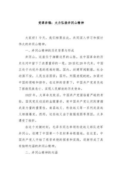/ 【七哥公文】2024年:党课讲稿:大力弘扬井冈山精神+更多免费公文+VX:QiGeGongWen2024