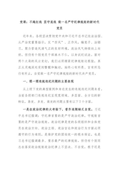 【七哥公文】2024年:党课:不越红线 坚守底线 做一名严守纪律规矩的新时代党员+更多免费公文+VX:QiGeGongWen2024