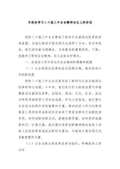 / 【七哥公文】2024年:市政协学习二十届三中全会精神会议上的讲话+更多免费公文+VX:QiGeGongWen2024