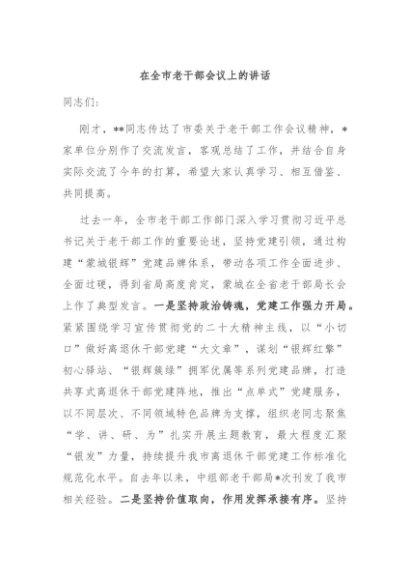 / 【七哥公文】2024年:在全市老干部会议上的讲话+更多免费公文+VX:QiGeGongWen2024