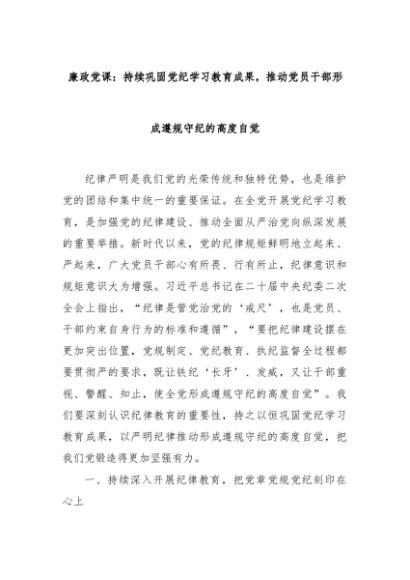 【七哥公文】2024年:廉政党课:持续巩固党纪学习教育成果,推动党员干部形成遵规守纪的高度自觉+更多免费公文+VX:QiGeGongWen2024