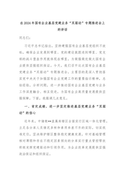 【七哥公文】2024年:在2024年国有企业基层党建业务“双驱动”专题推进会上的讲话+更多免费公文+VX:QiGeGongWen2024