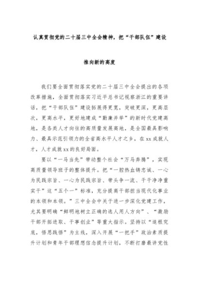 【七哥公文】2024年:认真贯彻党的二十届三中全会精神,把“干部队伍”建设推向新的高度+更多免费公文+VX:QiGeGongWen2024