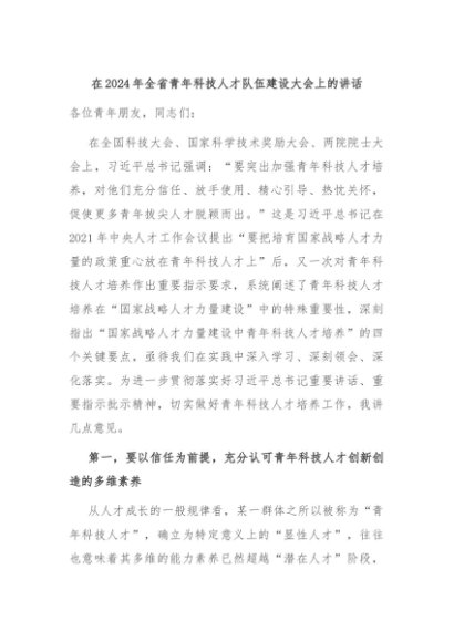/ 【七哥公文】2024年:在2024年全省青年科技人才队伍建设大会上的讲话+更多免费公文+VX:QiGeGongWen2024
