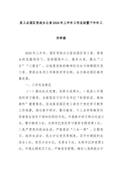 【七哥公文】2024年:某工业园区党政办公室2024年上半年工作总结暨下半年工作举措+更多免费公文+VX:QiGeGongWen2024