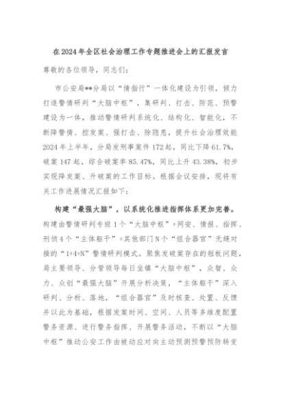 【七哥公文】2024年:在2024年全区社会治理工作专题推进会上的汇报发言+更多免费公文+VX:QiGeGongWen2024