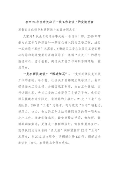 / 【七哥公文】2024年:在2024年全市关心下一代工作会议上的交流发言+更多免费公文+VX:QiGeGongWen2024