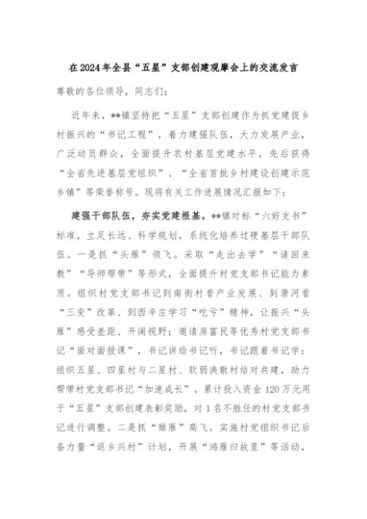 【七哥公文】2024年:在2024年全县“五星”支部创建观摩会上的交流发言+更多免费公文+VX:QiGeGongWen2024