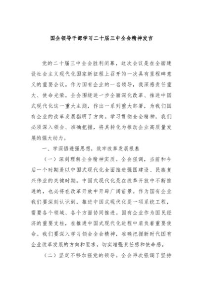 / 【七哥公文】2024年:国企领导干部学习二十届三中全会精神发言+更多免费公文+VX:QiGeGongWen2024