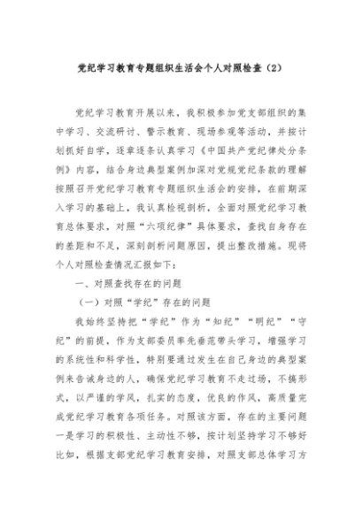 / 【七哥公文】2024年:党纪学习教育专题组织生活会个人对照检查(2)+更多免费公文+VX:QiGeGongWen2024