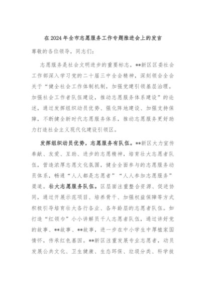 / 【七哥公文】2024年:在2024年全市志愿服务工作专题推进会上的发言+更多免费公文+VX:QiGeGongWen2024