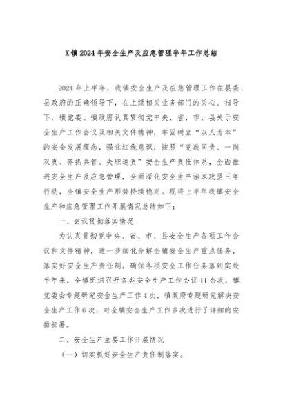 / 【七哥公文】2024年:X镇2024年安全生产及应急管理半年工作总结+更多免费公文+VX:QiGeGongWen2024