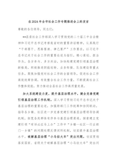 / 【七哥公文】2024年:在2024年全市社会工作专题推进会上的发言+更多免费公文+VX:QiGeGongWen2024