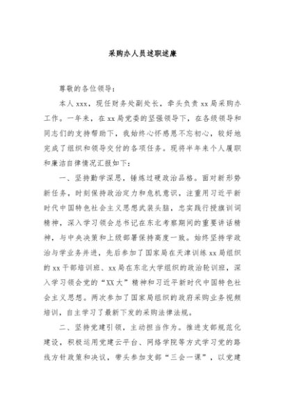 【七哥公文】2024年:采购办人员述职述廉+更多免费公文+VX:QiGeGongWen2024