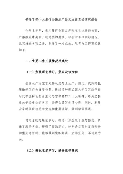 / 【七哥公文】2024年:领导干部个人履行全面从严治党主体责任情况报告+更多免费公文+VX:QiGeGongWen2024