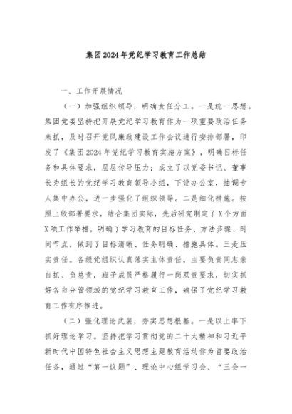 / 【七哥公文】2024年:集团2024年党纪学习教育工作总结+更多免费公文+VX:QiGeGongWen2024