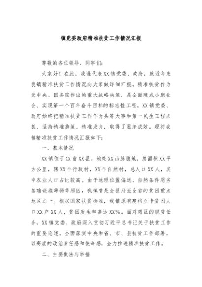 / 【七哥公文】2024年:镇党委政府精准扶贫工作情况汇报+更多免费公文+VX:QiGeGongWen2024