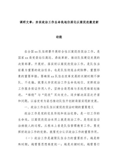 【七哥公文】2024年:调研文章:夯实政治工作生命线地位深化以案促改激发新动能+更多免费公文+VX:QiGeGongWen2024