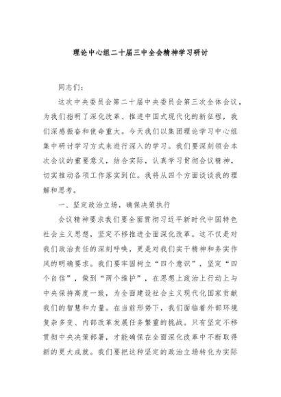 / 【七哥公文】2024年:理论中心组二十届三中全会精神学习研讨+更多免费公文+VX:QiGeGongWen2024