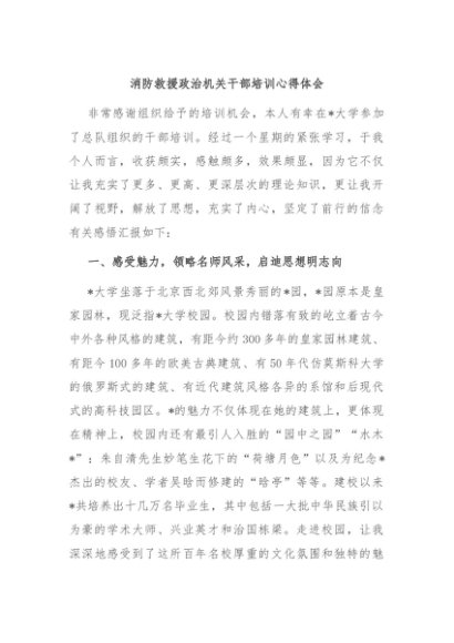【七哥公文】2024年:消防救援政治机关干部培训心得体会+更多免费公文+VX:QiGeGongWen2024