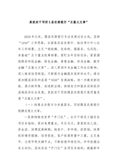 / 【七哥公文】2024年:真抓实干写好X县农商银行“五篇大文章”+更多免费公文+VX:QiGeGongWen2024