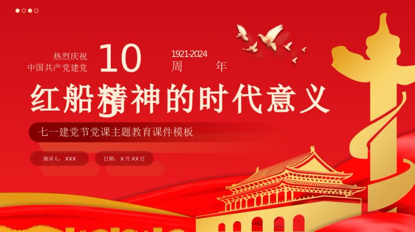 / 【七哥公文】2024年:红船精神的时代意义七一党课PPT模板+更多免费公文+VX:QiGeGongWen2024