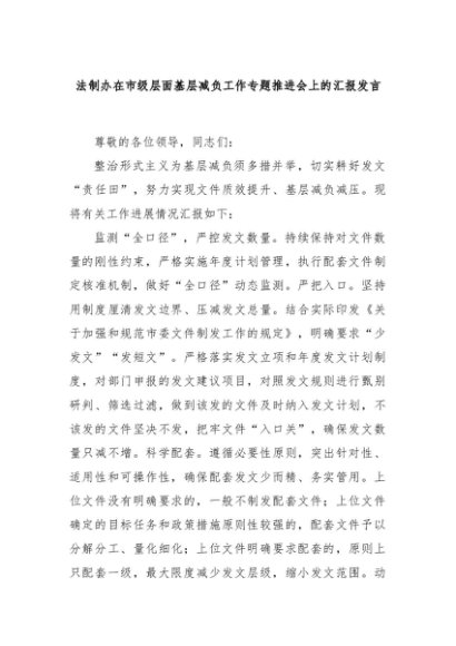 【七哥公文】2024年:法制办在市级层面基层减负工作专题推进会上的汇报发言+更多免费公文+VX:QiGeGongWen2024