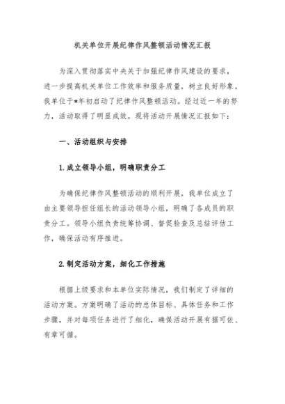/ 【七哥公文】2024年:机关单位开展纪律作风整顿活动情况汇报+更多免费公文+VX:QiGeGongWen2024