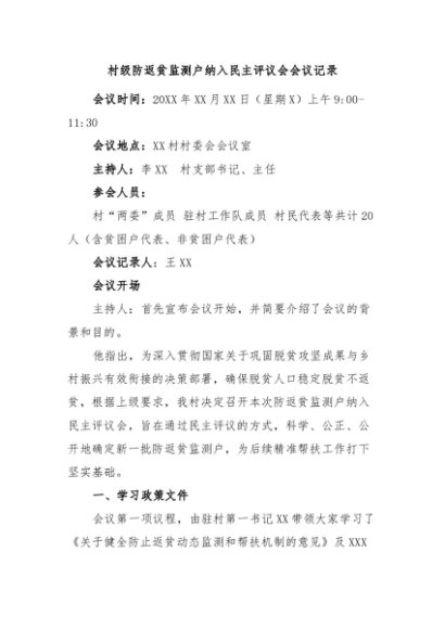 / 【七哥公文】2024年:村级防返贫监测户纳入民主评议会会议记录+更多免费公文+VX:QiGeGongWen2024