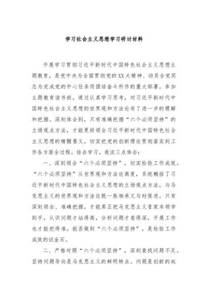 / 【七哥公文】2024年:学习社会主义思想学习研讨材料+更多免费公文+VX:QiGeGongWen2024